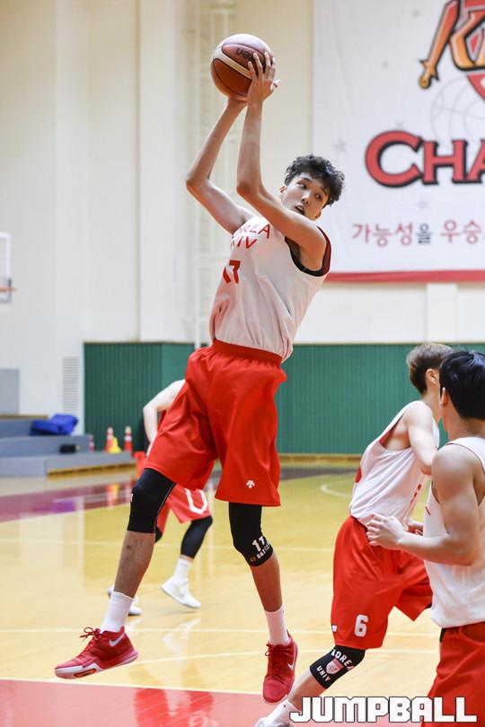 [점프볼=양지/홍기웅 기자] 31일 양지 SK 연습 체육관에서 열린 SK 나이츠와 고려대의 연습경기. 고려대 김준형이 리바운드를 잡고 있다.