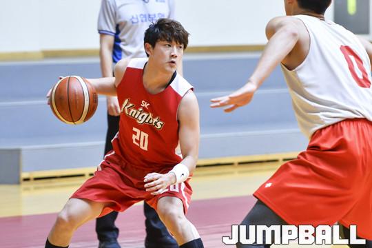 [점프볼=양지/홍기웅 기자] 31일 양지 SK 연습 체육관에서 열린 SK 나이츠와 고려대의 연습경기. SK 최성원이 역동적으로 드리블을 하며 기회를 보고 있다.