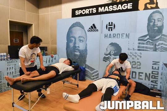 [점프볼=서울/홍기웅 기자] 4일 서울중앙고등학교 체육관에서 열린 '아디다스 크레이지 코트 3on3' 결선 경기. 지난달 21-22일, 28-29일 치열한 예선전을 거치고 난후 4일부터 서울중앙고등학교 체육관에서 결선경기가 펼쳐지고 있다. 체육관 한 쪽에서 스포츠 마사지를 경험할 수 있는 부스가 놓여져 참가자들이 마사지를 받고 있다.