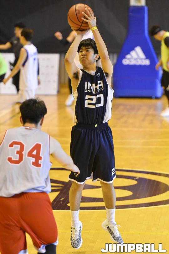 [점프볼=서울/홍기웅 기자] 4일 서울중앙고등학교 체육관에서 열린 '아디다스 크레이지 코트 3on3' 결선 경기 일반부 게릴라와 스미마셍 경기. 스미마셍이 3점슛을 던져 득점에 성공시키고 있다.