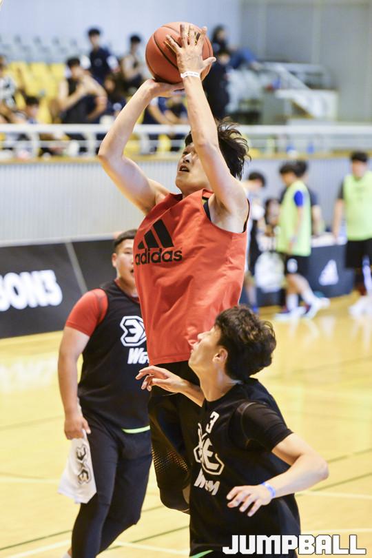 [점프볼=서울/홍기웅 기자] 4일 서울중앙고등학교 체육관에서 열린 '아디다스 크레이지코트 3on3' 결선 경기 팀우지원과 목련의 경기. 목련이 골밑슛을 득점해 점수차를 벌리고 있다.