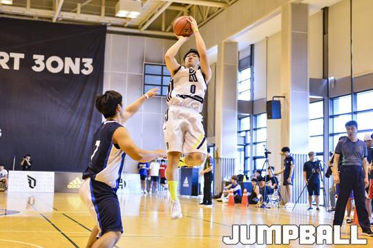 [점프볼=서울/홍기웅 기자] 5일 서울중앙고등학교 체육관에서 열린 '아디다스 크레이지코트 3on3' 결선 경기 대학일반부 8강 강해원사랑해와 노백송이 경기. 강해원사랑해가 점프슛을 던지고 있다.