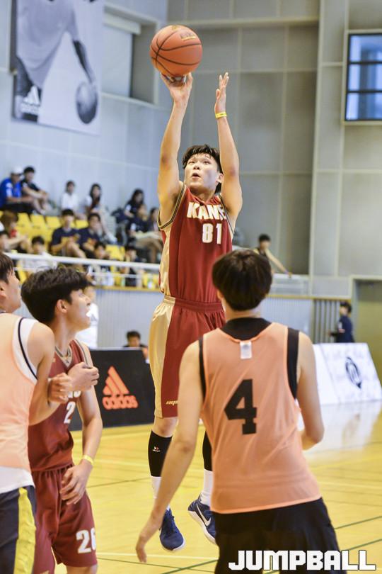 [점프볼=서울/홍기웅 기자] 5일 서울중앙고등학교 체육관에서 열린 '아디다스 크레이지코트 3on3' 결선 경기 대학 일반부 8강 목련과 픽미원 경기. 픽미원이 연장전을 점프슛으로 끝내고 있다.