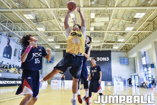 [점프볼=서울/홍기웅 기자] 5일 서울중앙고등학교 체육관에서 열린 '아디다스 크레이지코트 3on3' 결선 경기 중등부 결승 조커와 시흥03의 경기. 조커가 리바운드후 골밑슛을 던지고 있다.