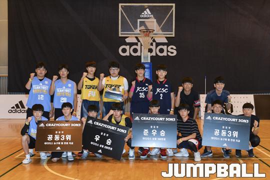 [점프볼=서울/홍기웅 기자] 5일 서울중앙고등학교 체육관에서 열린 '아디다스 크레이지 코트 3on3' 결선 경기. 중등부 우승 조커, 준우승 시흥03, 3위 퍼스트, 효공프렌즈가 모여 단체 촬영을 하고 있다.