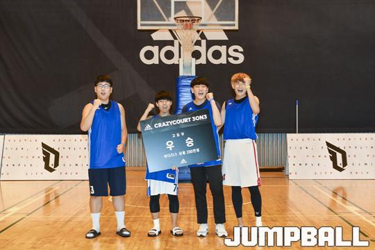 [점프볼=서울/홍기웅 기자] 5일 서울중앙고등학교 체육관에서 열린 '아디다스 크레이지 코트 3on3' 결선 경기. 고등부 결승 경기에서 셧다운이 우승을 거둬 단체 촬영을 하고 있다.