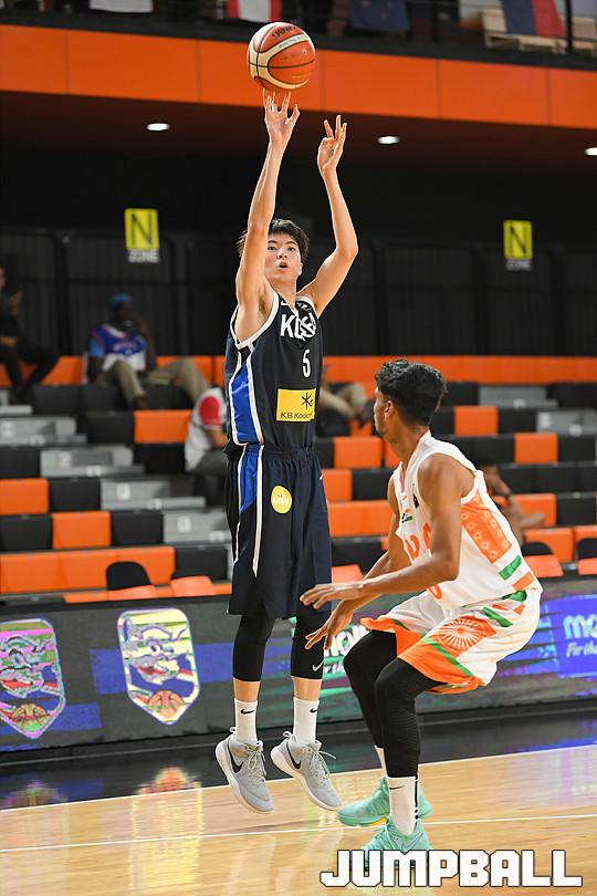 [점프볼=방콕/유용우 기자] 06일 태국 모노29 스튜디오 체육관에서 열린 'FIBA U18 아시아 남자농구대회' 한국과 인도의 D조 예선 경기, U18 남자농구대표팀 이현중이 중거리슛을 던지고 있다.