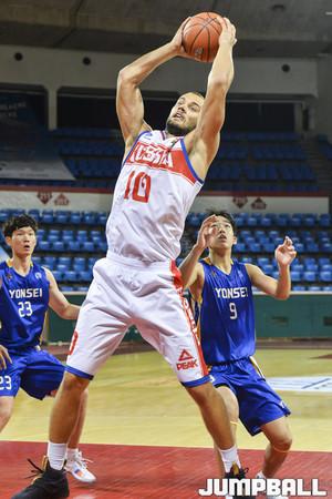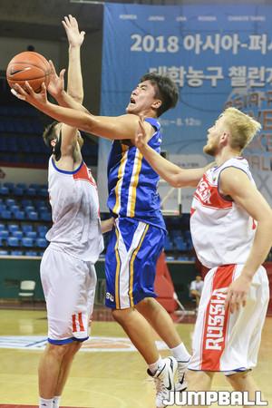 [점프볼=잠실/홍기웅 기자] 6일 잠실학생체육관에서 열린 '2018 아시아-퍼시픽 대학농구 챌린지' 러시아와 한국(연세대)의 경기. 한국 박지원이 패스를 건네고 있다.