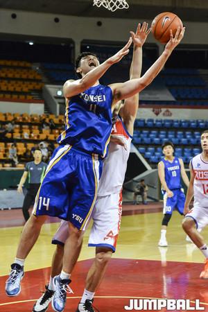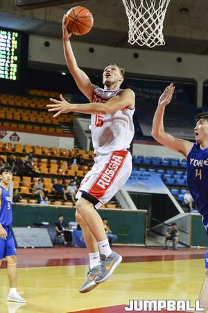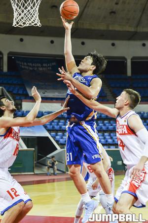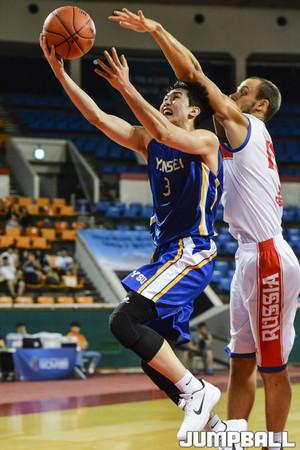[점프볼=잠실/홍기웅 기자] 6일 잠실학생체육관에서 열린 '2018 아시아-퍼시픽 대학농구 챌린지' 러시아와 한국(연세대)의 경기. 러시아 게오르기이 예고로프가 3점슛을 연속해서 득점하고 있다.