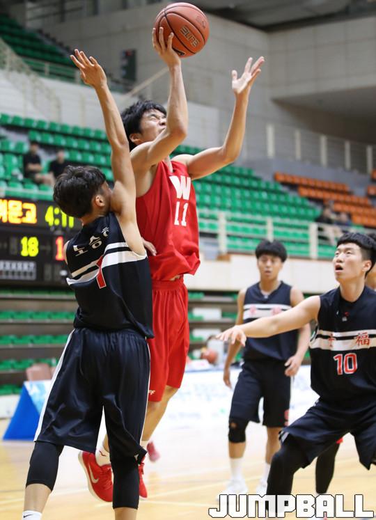6일 영주 국민체육센터에서 열린 2018 주말리그 왕중왕전 휘문고와 경복고의 예선 경기, 휘문고가 접전 끝에 77-72로 승리를 거두고 결선에 올랐다.