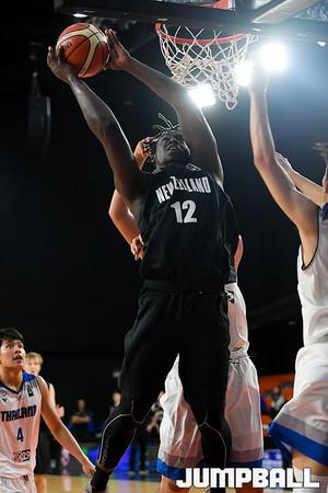[점프볼=방콕/유용우 기자] 06일 태국 모노29 스튜디오 체육관에서 열린 'FIBA U18 아시아 남자농구대회' 태국과 뉴질랜드의 C조 예선 경기, 뉴질랜드 플린 맥퍼슨 카메론이 골밑 공격을 시도하고 있다.