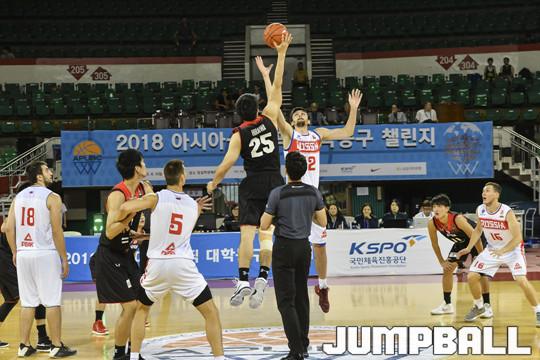 [점프볼=잠실/홍기웅 기자] 8일 잠실학생체육관에서 열린 '2018 아시아-퍼시픽 대학농구 챌린지' 러시아와 일본의 경기. 심판의 점프볼로 러시아와 일본의 경기 시작을 알리고 있다.