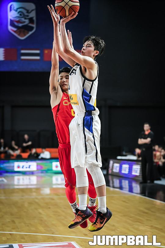 [점프볼=태국/유용우 기자] 09일 태국 모노29 스튜디오 체육관에서 열린 'FIBA U18 아시아 남자농구대회' 한국과 중국의 8강전 경기, U18 남자농구대표팀 박무빈이 중거리슛을 던지고 있다.