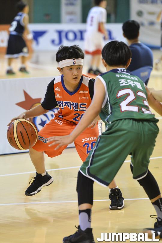 [점프볼=군산/홍기웅 기자] 10일 군산월명체육관 A코트에서 열린 '2018 KBL 유소년클럽 농구대회 IN 군산' 고학년 전자랜드와 DB의 경기. 전자랜드 유소년이 드리블 돌파를 하고 있다.