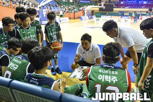 [점프볼=군산/홍기웅 기자] 10일 군산월명체육관 A코트에서 열린 '2018 KBL 유소년클럽 농구대회 IN 군산' 고학년 DB와 SK의 경기. 작전타임에 DB 코치가 작전을 지시하고 있다.