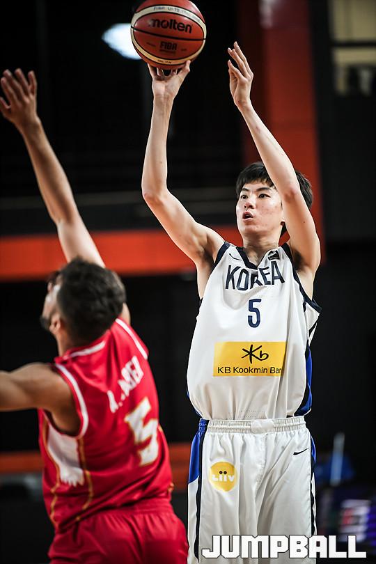 [점프볼=태국/유용우 기자] 11일 태국 모노29 스튜디오 체육관에서 열린 'FIBA U18 아시아 남자농구대회' 한국과 바레인의 7-8위 결정전, U18 남자농구대표팀 이현중이 중거리슛을 시도하고 있다.