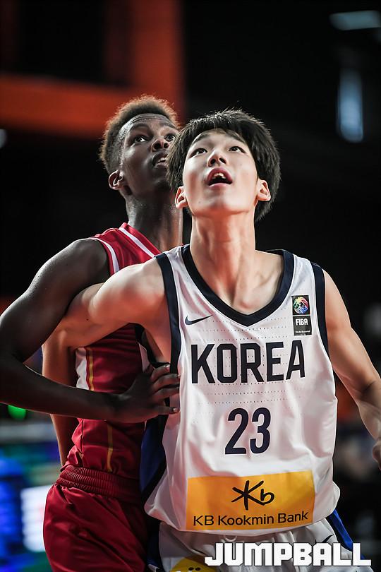 [점프볼=태국/유용우 기자] 11일 태국 모노29 스튜디오 체육관에서 열린 'FIBA U18 아시아 남자농구대회' 한국과 바레인의 7-8위 결정전, U18 남자농구대표팀 이원석이 박스아웃하며 리바운드를 준비하고 있다.
