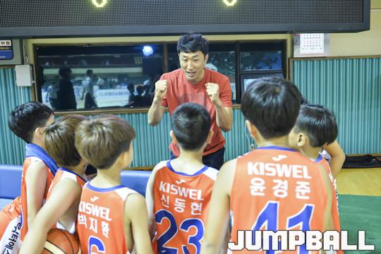 [점프볼=군산/홍기웅 기자] 11일 군산월명체육관에서 열린 '2018 KBL 유소년클럽 농구대회 IN 군산' 전자랜드와 KCC의 경기. 전자랜드 정영삼이 아들 정찬윤 군을 응원하기 위해 월명체육관을 찾았다. 정영삼이 유소년 선수들에게 화이팅을 해주고 있다.