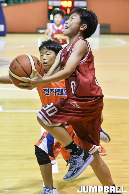 [점프볼=군산/홍기웅 기자] 11일 군산월명체육관에서 열린 '2018 KBL 유소년클럽 농구대회 IN 군산' 고학년 전자랜드와 LG의 경기. LG 유소년이 골밑슛을 시도하고 있다.