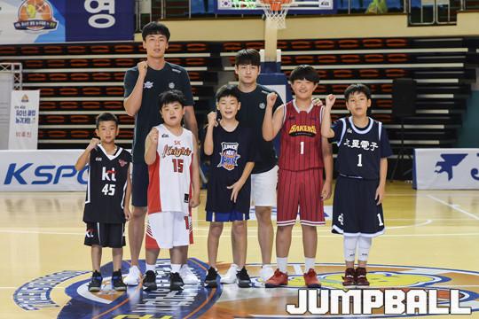 [점프볼=군산/홍기웅 기자] 11일 군산월명체육관에서 열린 '2018 KBL 유소년클럽 농구대회 IN 군산'에 KCC 이현민, 김민구, 송교창, 유현준이 KCC 제2연고지인 군산에 응원차 찾았다. 이현민, 김민구, 송교창, 유현준은 유소년을 상대로 농구클리닉을 열어 드리블, 패스, 슛, 스텝 등을 클리닉 했으며, 사인회와 객원코치를 해 유소년과 즐거운 하루를 보냈다. KCC 유현준과 송교창이 클리닉에 참여한 유소년들과 단체 사진을 찍고 있다.