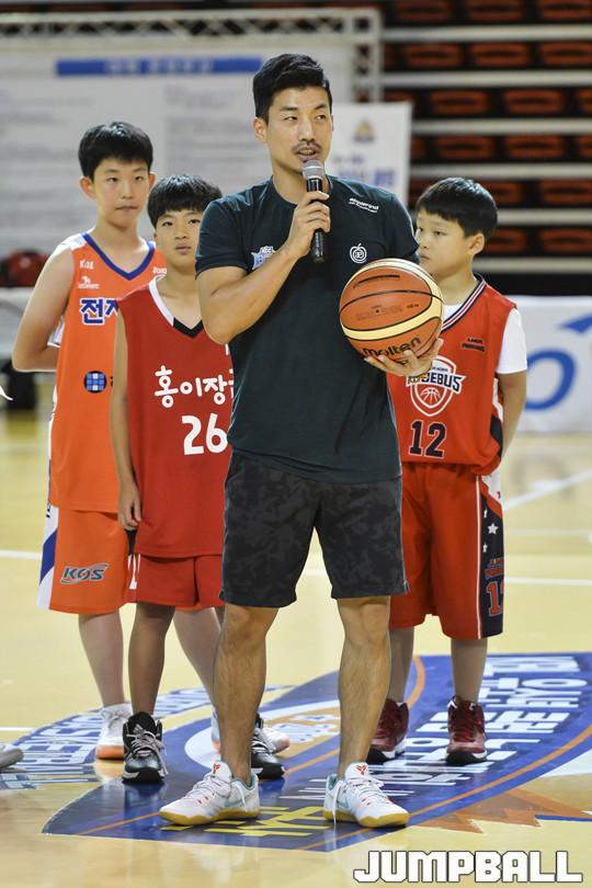 [점프볼=군산/홍기웅 기자] 11일 군산월명체육관에서 열린 '2018 KBL 유소년클럽 농구대회 IN 군산'에 KCC 이현민, 김민구, 송교창, 유현준이 KCC 제2연고지인 군산에 응원차 찾았다. 이현민, 김민구, 송교창, 유현준은 유소년을 상대로 농구클리닉을 열어 드리블, 패스, 슛, 스텝 등을 클리닉 했으며, 사인회와 객원코치를 해 유소년과 즐거운 하루를 보냈다. KCC 이현민이 패스 클리닉에 대해 설명을 하고 있다.