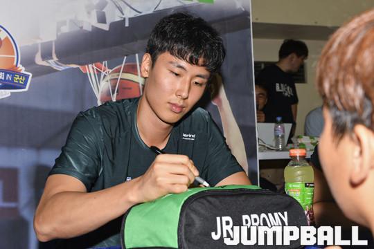 [점프볼=군산/홍기웅 기자] 11일 군산월명체육관에서 열린 '2018 KBL 유소년클럽 농구대회 IN 군산'에 KCC 이현민, 김민구, 송교창, 유현준이 KCC 제2연고지인 군산에 응원차 찾았다. 이현민, 김민구, 송교창, 유현준은 유소년을 상대로 농구클리닉을 열어 드리블, 패스, 슛, 스텝 등을 클리닉 했으며, 사인회와 객원코치를 해 유소년과 즐거운 하루를 보냈다. KCC 송교창이 유소년의 농구화 가방에 사인을 해주고 있다.