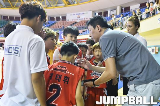[점프볼=군산/홍기웅 기자] 12일 군산월명체육관 A코트에서 열린 '2018 KBL 유소년클럽 농구대회 IN 군산' 저학년 결승 삼성과 현대모비스의 경기. 현대모비스 코치가 작전을 지시하고 있다.