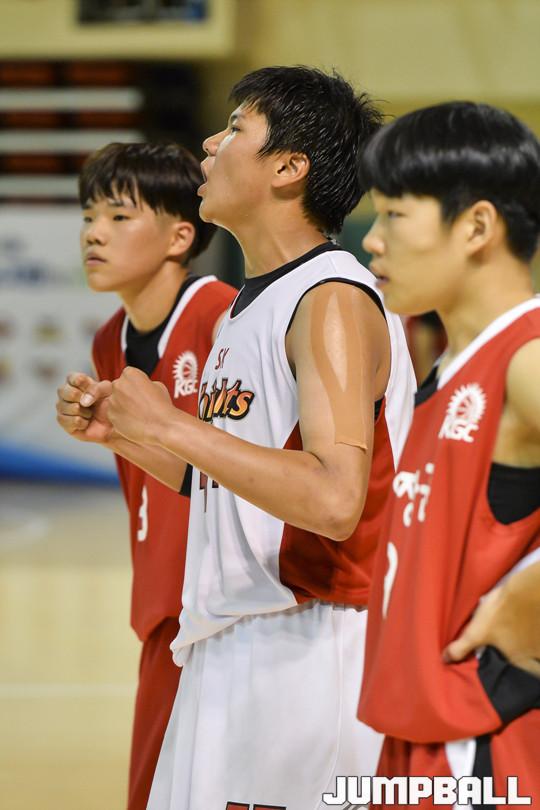 [점프볼=군산/홍기웅 기자] 12일 군산월명체육관 A코트에서 열린 '2018 KBL 유소년클럽 농구대회 IN 군산' 중등부 결승 SK와 KGC의 경기. SK 유소년이 자유투로 승리에 한발짝 더 다가가자 포효를 하고 있다.