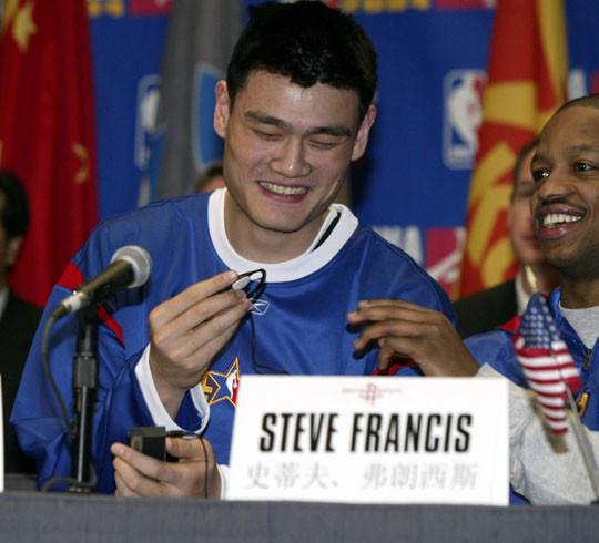 또, 휴스턴의 주축이던 스티브 프랜시스도 야오밍의 지명을 비난, 실망감을 감추지 못했다. 그러나 야오밍과의 첫 훈련에서 그의 농구열정과 친화력에 깊은 감명을 받은 프랜시스는 이후 야오밍의 든든한 파트너가 됐고, 두 사람의 끈끈한 우정은 지금까지도 굳건하다. 그 예로 야오밍은 2004년 여름, 프랜시스가 올랜도 매직으로 트레이드 됐을 때, 구단 측에 강한 불만을 드러내며, 친구 따라 올랜도 이적을 진지하게 고려한 것으로 알려졌다. 2016년 명예의 전당 헌액 때도 프랜시스에 대한 고마운 마음을 잊지 않기도 했다. 마찬가지 프랜시스도 2016년 중국을 직접 방문, 야오밍의 명예의 전당 입성을 진심으로 축하하기도 했다.