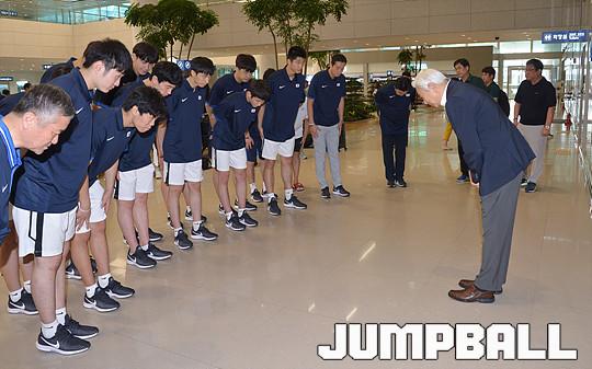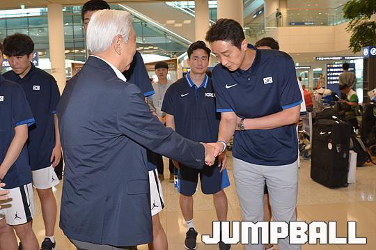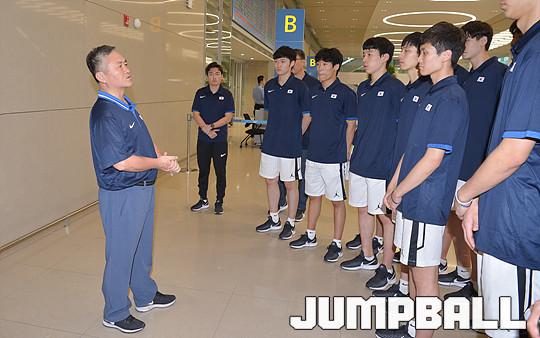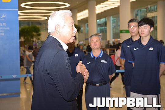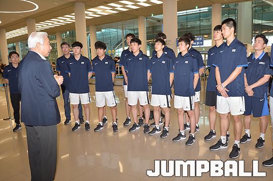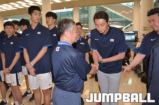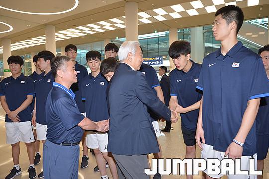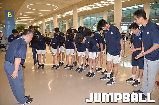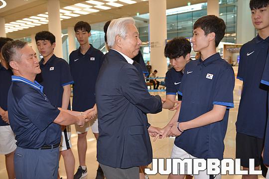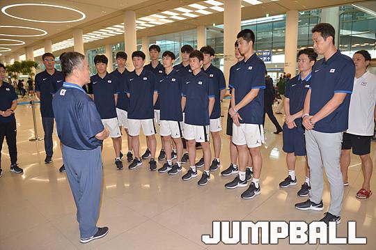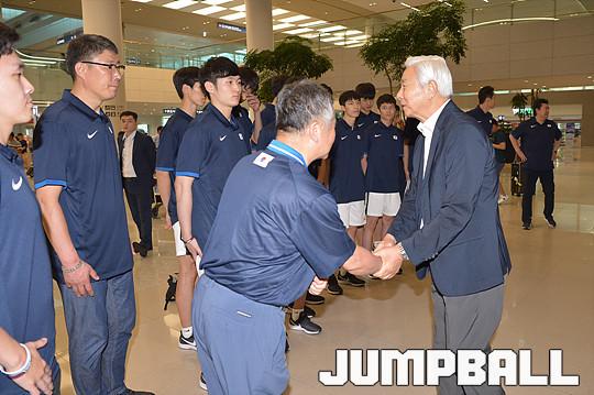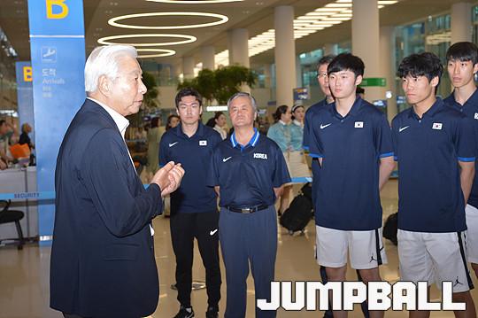 [점프볼=인천공항/유용우 기자] 13일 남자농구대표팀이 FIBA U18 아시아 남자농구대회를 마치고 인천공항을 통해 입국하였다. 주전 선수들이 부상으로 베스트 컨디션으로 경기에 임하지 못한 U18 대표팀은 중요 순간 판정 불운까지 겹치며 8위로 대회를 마감하였다. 방열 농구협회 회장이 U18 남자농구대표팀을 격려하며 선수로서의 성장에 좋은 밑거름이 됐기를 당부하였다. U18 남자농구대표팀 귀국현장