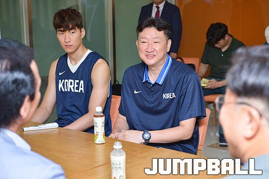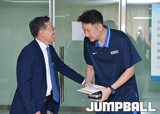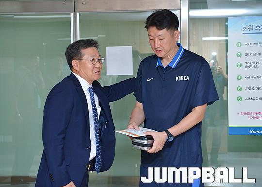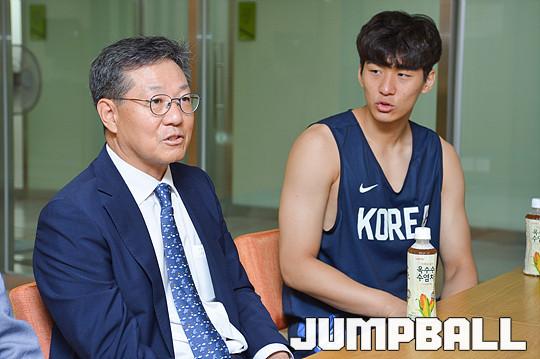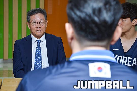 [점프볼=방이/유용우 기자] 16일 올림픽체조경기장내 스포츠센터에서 체력훈련 중인 아시안게임 3x3 남자농구대표팀을 KBL 이정대 총재가 격려차 방문하였다. 2018 자카르타-팔렘방 아시안게임 3x3에 출전하는 남자 농구 대표팀(양홍석, 박인태, 안영준, 김낙현)은 국내에서 훈련을 진행하고 19일 자카르타로 출국한다.