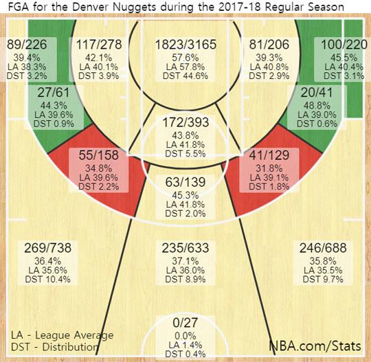 #2017-2018시즌 정규리그 덴버 너게츠 슈팅성공률 분포도