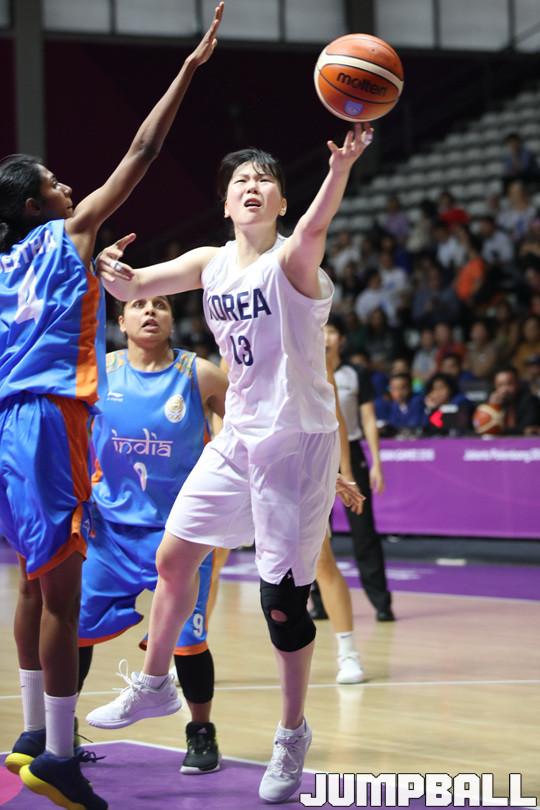 여자농구대표팀 코리아가 20일(이하 한국시간) 인도네시아 자카르타 겔로라 붕 카르노(GBK) 농구장에서 열린 2018 자카르타-팔렘방 아시안게임 여자농구 예선 경기에서 김소담이 교체 투입된 이후 과감한 공격으로 득점에 성공했다.