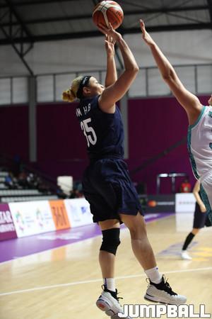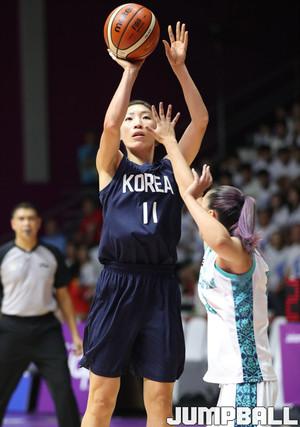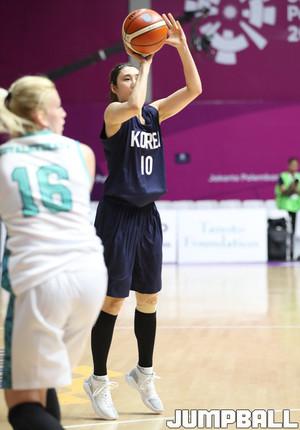 여자농구대표팀 코리아가 21일(이하 한국시간) 인도네시아 자카르타 겔로라 붕 카르노농구장에서 열린 2018 자카르타-팔렘방 아시안게임 여자농구 예선 경기에서 대표팀의 막내 박지현이 회심의 드라이브 인 공격을 시도했으나 상대 수비에 막혀 득점에 실패했다.