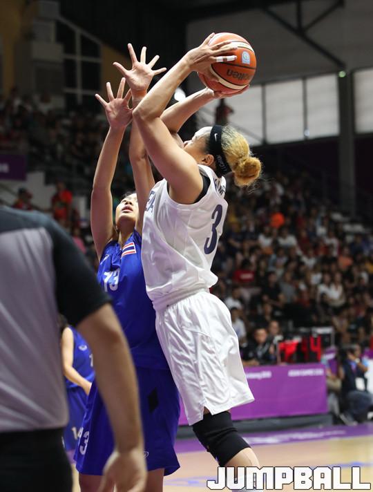 여자농구대표팀 코리아는 26일(이하 한국시간) 인도네시아 자카르타 겔로라 붕 카르노(GBK) 농구장에서 열린 2018 자카르타-팔렘방 아시안게임 여자농구 8강 태국과의 경기, 코리아팀의 김한별이 특유의 파워를 이용해 골밑 공격을 시도하고 있다.