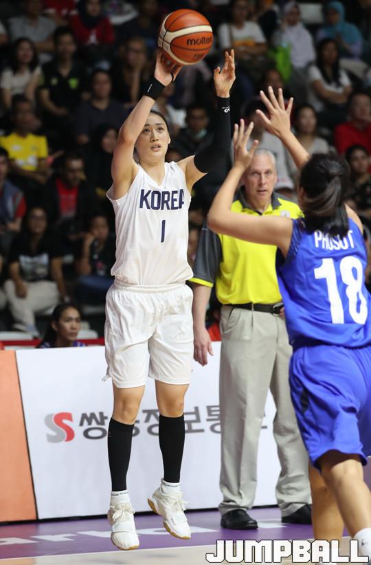여자농구대표팀 코리아는 26일(이하 한국시간) 인도네시아 자카르타 겔로라 붕 카르노(GBK) 농구장에서 열린 2018 자카르타-팔렘방 아시안게임 여자농구 8강 태국과의 경기, 코리아팀의 강이슬이 정확한 3점슛을 터트리며 새로운 슈터로 자리매김 했다.