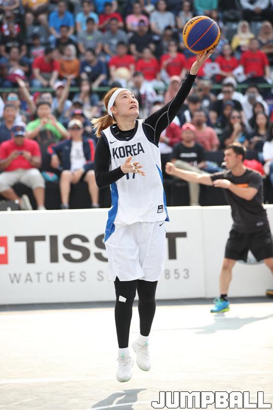한국 여자3x3농구 대표팀은 26일 인도네시아 자카르타 겔로라 붕 카르노(GBK)의 야외코트에서 벌어진 대회 3대3농구 여자 8강전 대만과의 경기, 한국의 박지은이 공격을 시도했으나 아쉽게도 공격자 파울로 득점에 실패했다.