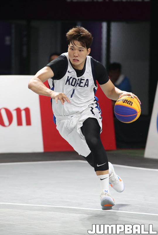 26일(한국시간) 인도네시아 자카르타 GBK 야외 테니스 코트에서 열린 2018 자카르타-팔렘방 아시안게임 남자농구 태국과의 4강전, 한국의 안영준이 빠르게 드리블로 전진하며 팀 공격을 이끌고 있다.