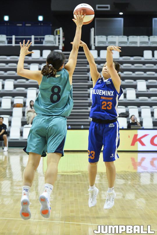 [점프볼=수원/홍기웅 기자] 27일 서수원칠보체육관에서 열린 '2018 우리은행 박신자컵 서머리그' KEB하나은행과 삼성생명의 경기. 삼성생명 황미우가 3점슛을 던지고 있다.