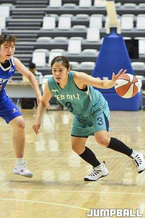 [점프볼=수원/홍기웅 기자] 27일 서수원칠보체육관에서 열린 '2018 우리은행 박신자컵 서머리그' KEB하나은행과 삼성생명의 경기. KEB 하나은행 김지영이 드리블 돌파를 하고 있다.