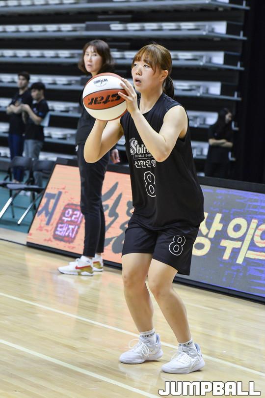 [점프볼=수원/홍기웅 기자] 27일 서수원칠보체육관에서 열린 '2018 우리은행 박신자컵 서머리그' 신한은행과 KDB생명의 경기. 신한은행 편예빈이 오픈 찬스 3점슛을 던질 준비하고 있다.