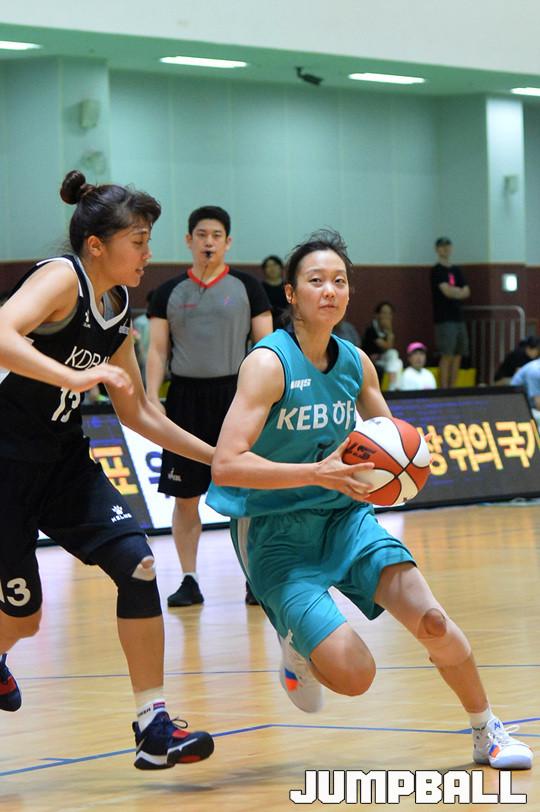 [점프볼=수원/김상준 기자] 1일 수원 보훈재활 체육센터에서 열린 '2018 우리은행 박신자컵 서머리그' KEB하나은행과 KDB생명의 경기.KEB하나은행 신지현은 수비를 돌파 시도하고 있다.