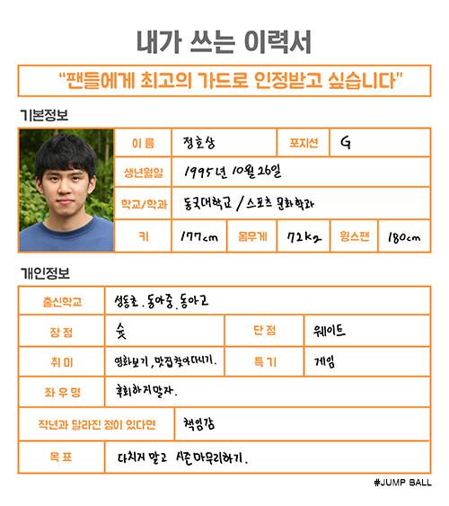 [점프볼=강현지 기자] 2018년 신인 드래프트에 도전하는 ‘예비 프로’가 쓰는 취업이력서. 16편의 주인공은 동국대 정호상(23, 177cm)이다. 그간 정호상은 화려한 스탯(stat)으로 크게 주목받은 건 아니지만, 필요한 순간 마다 힘을 내며 팀 승리에 기여해왔다. 탄탄한 하드웨어로 플레이를 주도하기보단 타이트한 수비, 그리고 빠른 발을 앞세워 플레이를 이끄는 스타일. 그런 그가 오는 11월 말에 열릴 예정인 신인드래프트를 앞두고 자신을 프로에 어필해왔다.