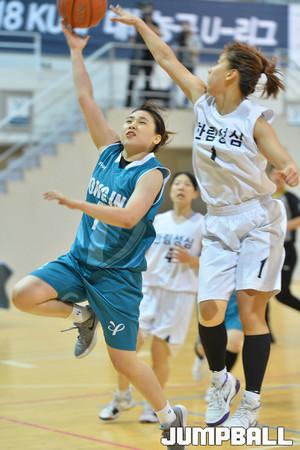[점프볼=춘천/문복주 기자] 10일 춘천 한림성심대학교 체육관에서 열린 2018 KUSF 대학농구 U-리그 여자부 한림성심대와 수원대의 경기에서 수원대 임유리가 과감한 중거리슛을 던지고 있다.