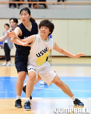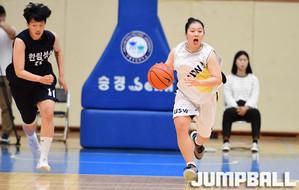 [점프볼=춘천/문복주 기자] 10일 춘천 한림성심대학교 체육관에서 열린 2018 KUSF 대학농구 U-리그 여자부 한림성심대와 수원대의 경기에서 한림성심대 김민정이 상대의 수비를 뿌리치고 패스를 하고 있다.