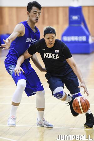 [점프볼=진천/홍기웅 기자] 13일 충북진천선수촌 챔피언하우스에서 열린 대한민국 여자 농구 대표팀과 청주신흥고와의 연습경기. 청주신흥고 박상우가 높이와 점프력을 이용해 레이업을 올리고 있다.