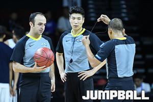 위롱 럭스젠(대만)과 나고야 다이아몬드(일본)이 개막전 경기, KBL 박경진 심판이 경기를 진행하고 있다.