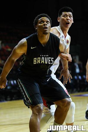 중국 산동 시왕과 대만 푸본 브레이브스의 경기, 푸본 대니얼 오튼이 KBL 황인태 심판에게 설명을 요청하고 있다.