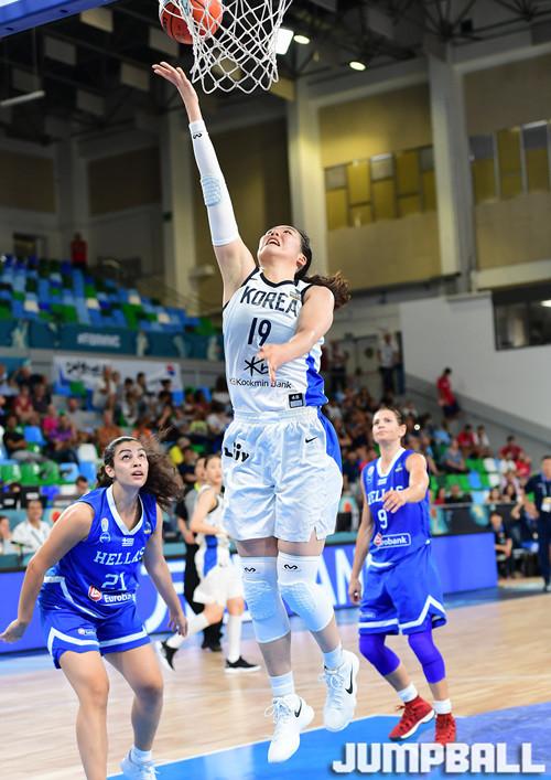 [점프볼=스페인 테네리페 /문복주 기자] 25일 스페인 테네리페 퀴코 카브레라 체육관에서 열린 2018 국제농구연맹(FIBA) 여자농구월드컵 A조 마지막 예선으로 한국과 그리스의 경기, 한국 박지수가 골밑을 파고들어 여유있게 득점을 하고 있다.