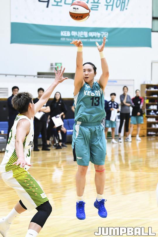 [점프볼=용인/홍기웅 기자] 28일 용인 하나은행 연습체육관에서 KEB하나와 일본 JX의 경기가 열렸다. KEB하나 김단비가 3점슛을 던지고 있다.